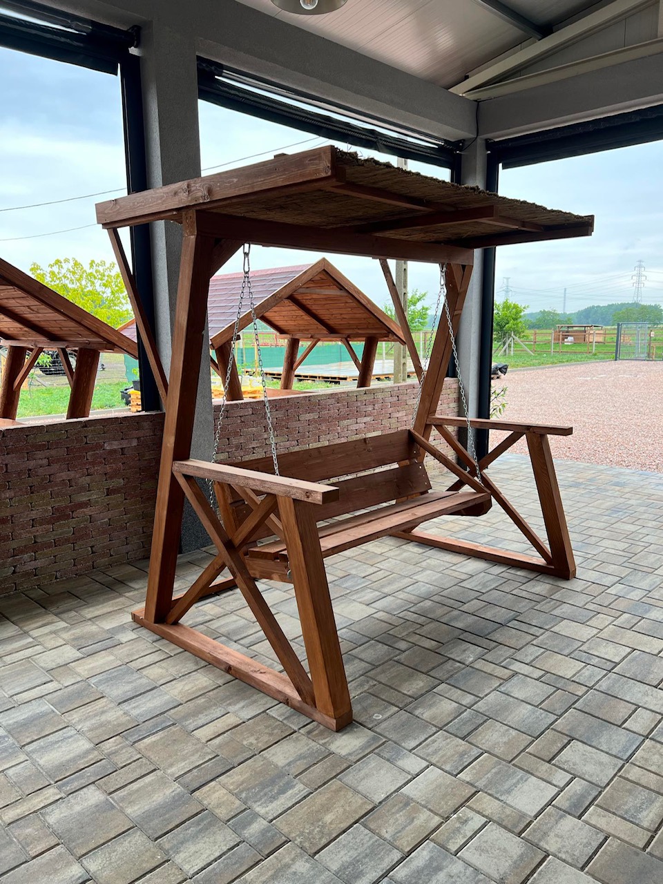 Saját tervezésű hinta ágyunk, amely masszív, de mégis könnyen mozgatható. Lehet kérni nád, illetve zsindelytetővel, de akár tető nélkül, ha épp teraszra szeretnék. Egy biztos mindenhogy az udvar/ kert dísze lesz. Műszárított fenyőből készítjük melyet gyalulunk és vissza csiszolunk a két réteg lazúr között, hogy tökéletesen sima felülettel szolgálja az Ön kényelmét.